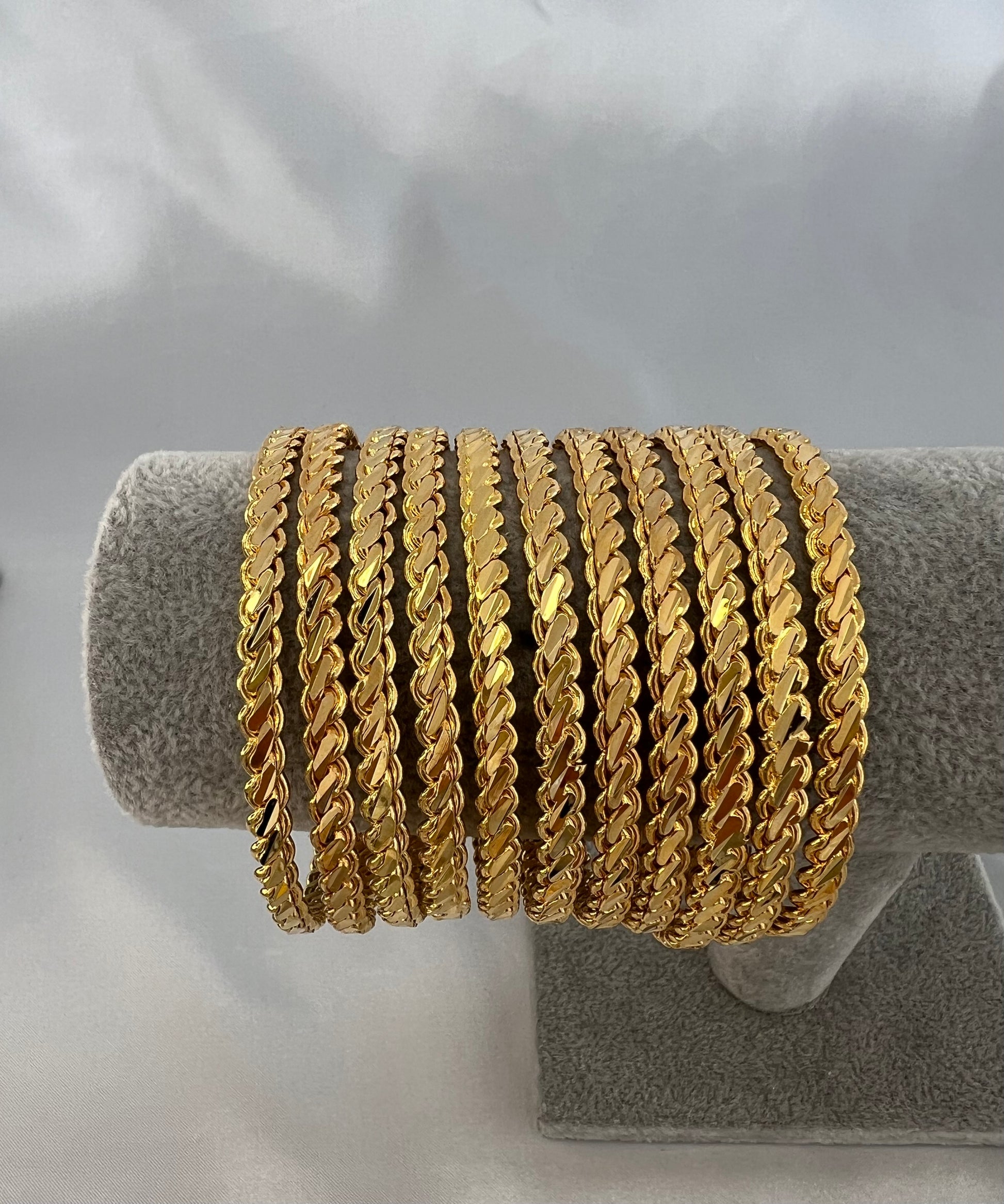 Dieser exquisite Armreif ist ein zeitloses Schmuckstück, das Eleganz und Raffinesse verkörpert. Hergestellt aus hochwertigem Material und sorgfältig vergoldet mit 22 Karat Gold, strahlt dieser Armreif Luxus und Klasse aus.
