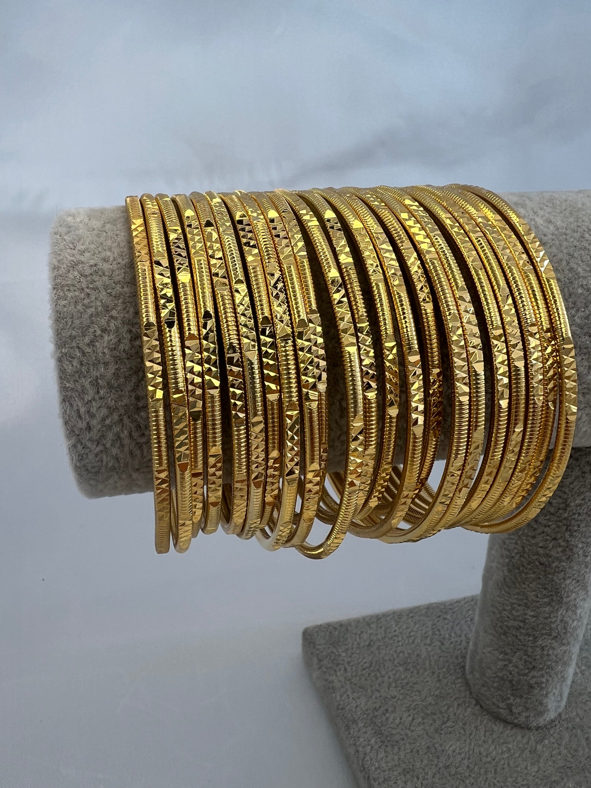 Dieser exquisite Armreif ist ein zeitloses Schmuckstück, das Eleganz und Raffinesse verkörpert. Hergestellt aus hochwertigem Material und sorgfältig vergoldet mit 22 Karat Gold, strahlt dieser Armreif Luxus und Klasse aus.