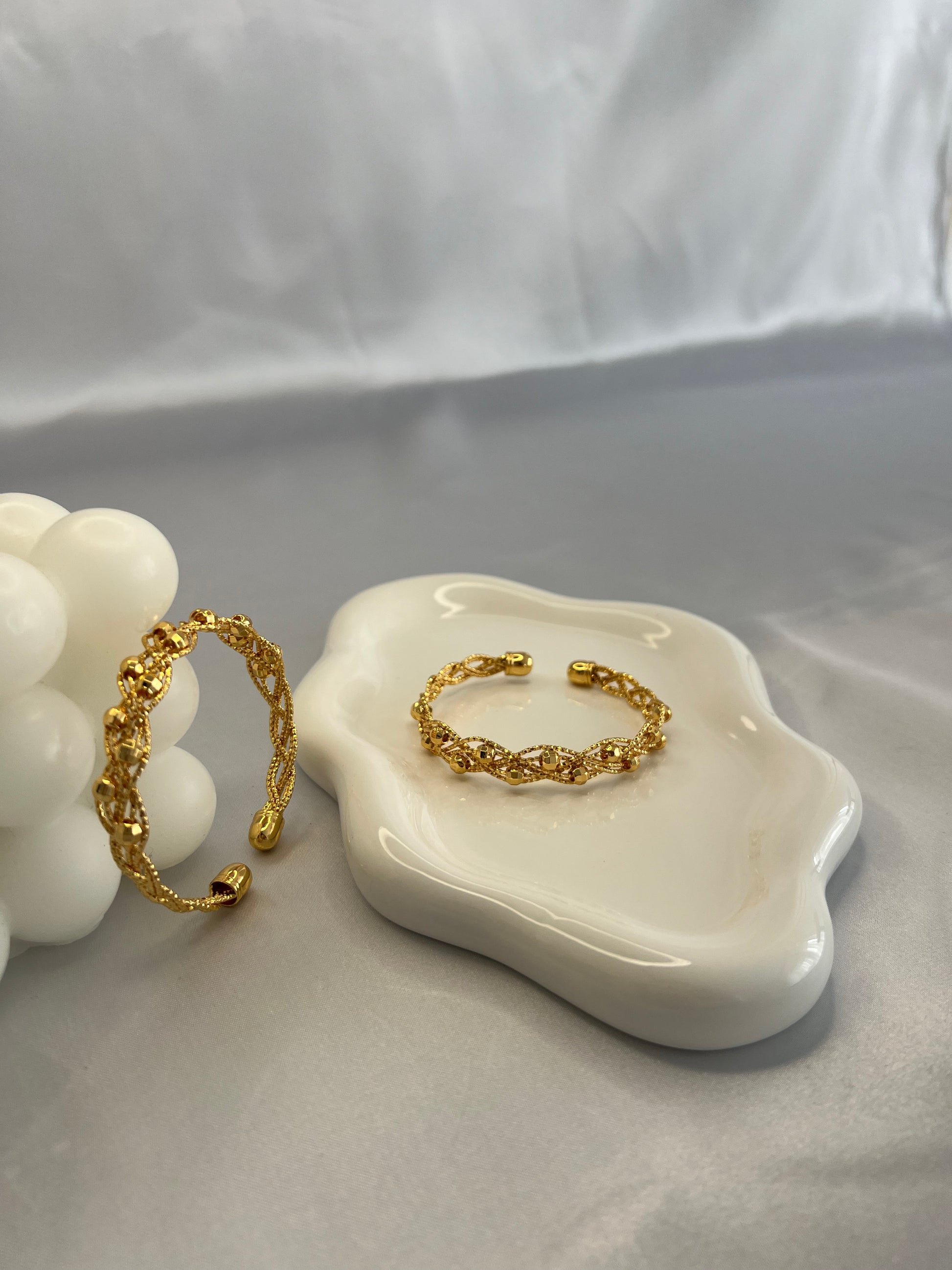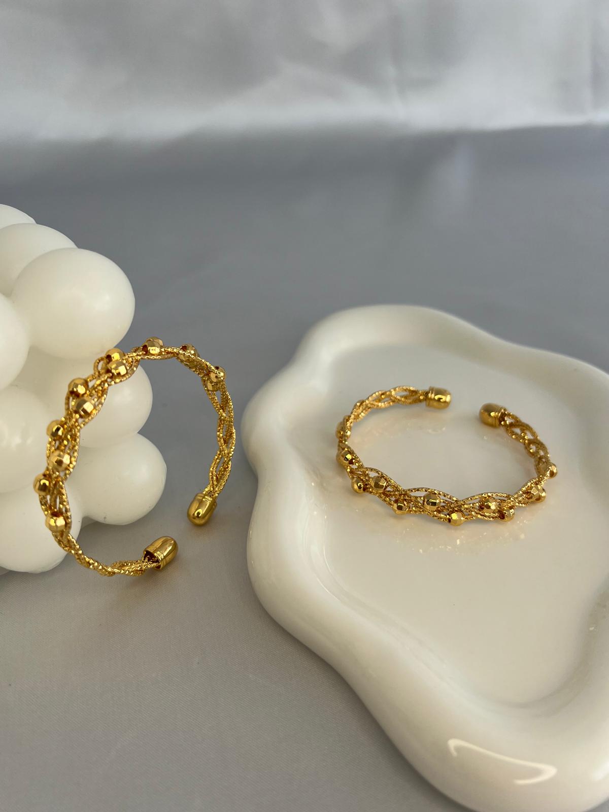 Dieser exquisite Armreif ist ein zeitloses Schmuckstück, das Eleganz und Raffinesse verkörpert. Hergestellt aus hochwertigem Material und sorgfältig vergoldet mit 22 Karat Gold, strahlt dieser Armreif Luxus und Klasse aus.