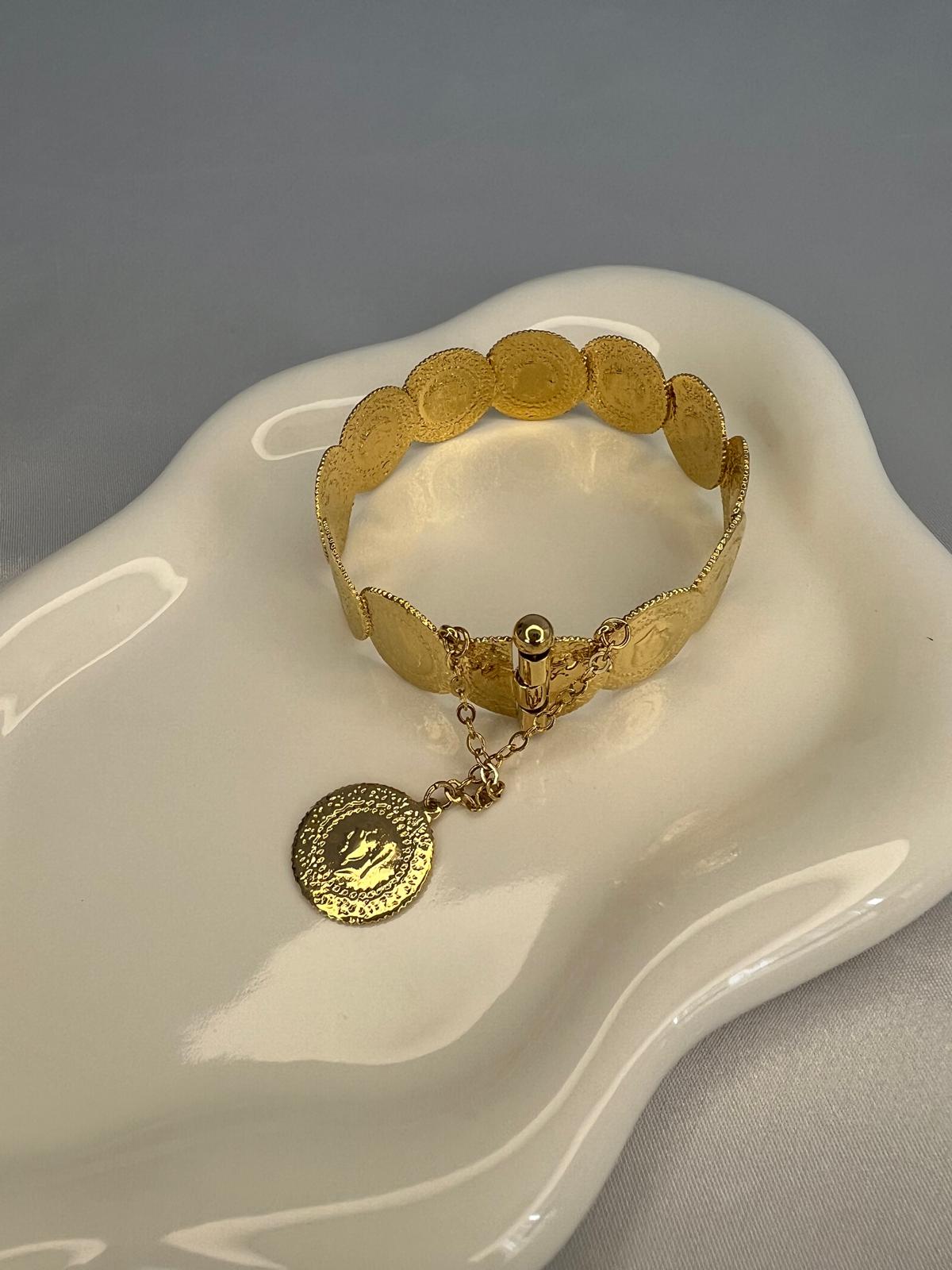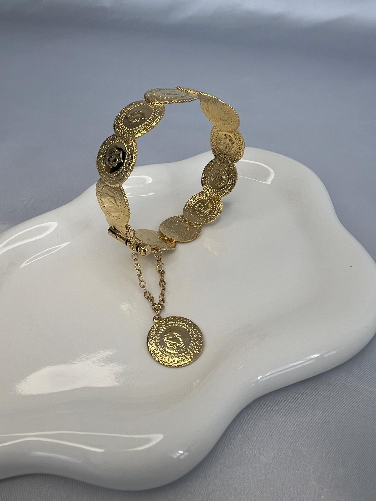 Dieser exquisite Armreif ist ein zeitloses Schmuckstück, das Eleganz und Raffinesse verkörpert. Hergestellt aus hochwertigem Material und sorgfältig vergoldet mit 22 Karat Gold, strahlt dieser Armreif Luxus und Klasse aus.