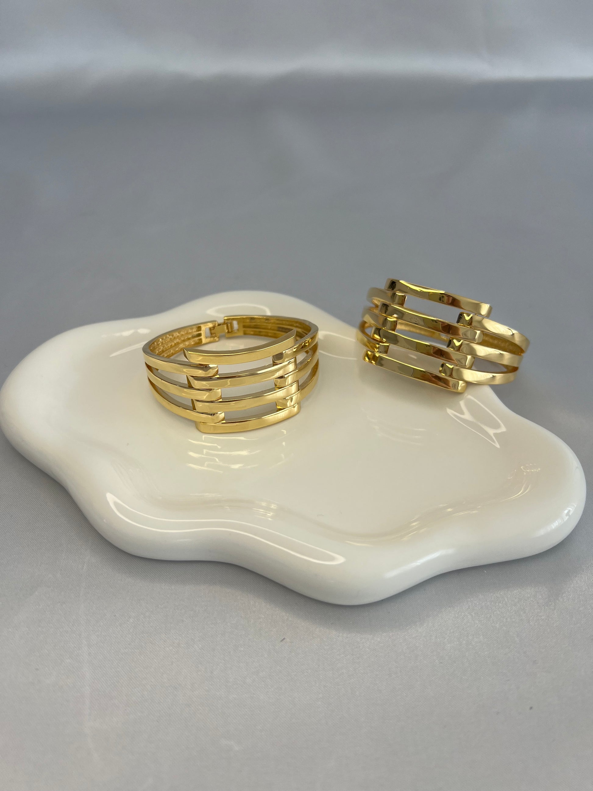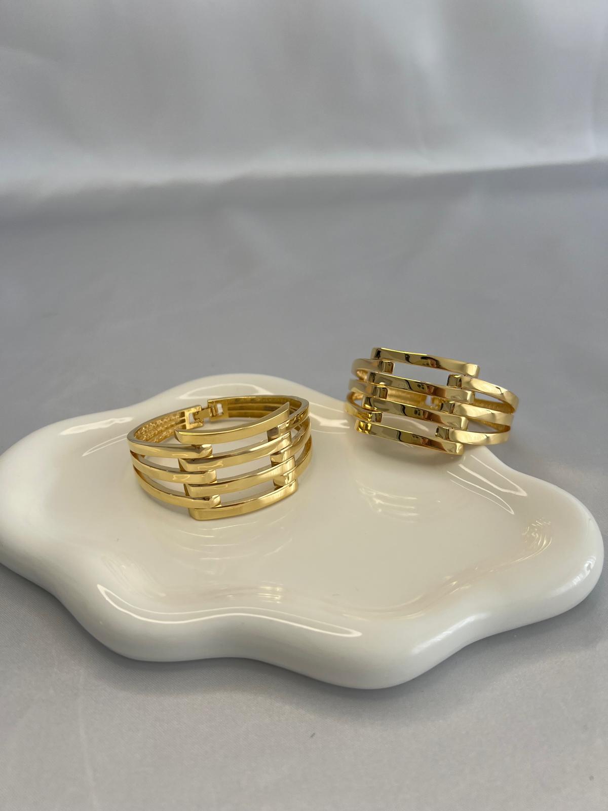 Dieser exquisite Armreif ist ein zeitloses Schmuckstück, das Eleganz und Raffinesse verkörpert. Hergestellt aus hochwertigem Material und sorgfältig vergoldet mit 22 Karat Gold, strahlt dieser Armreif Luxus und Klasse aus.