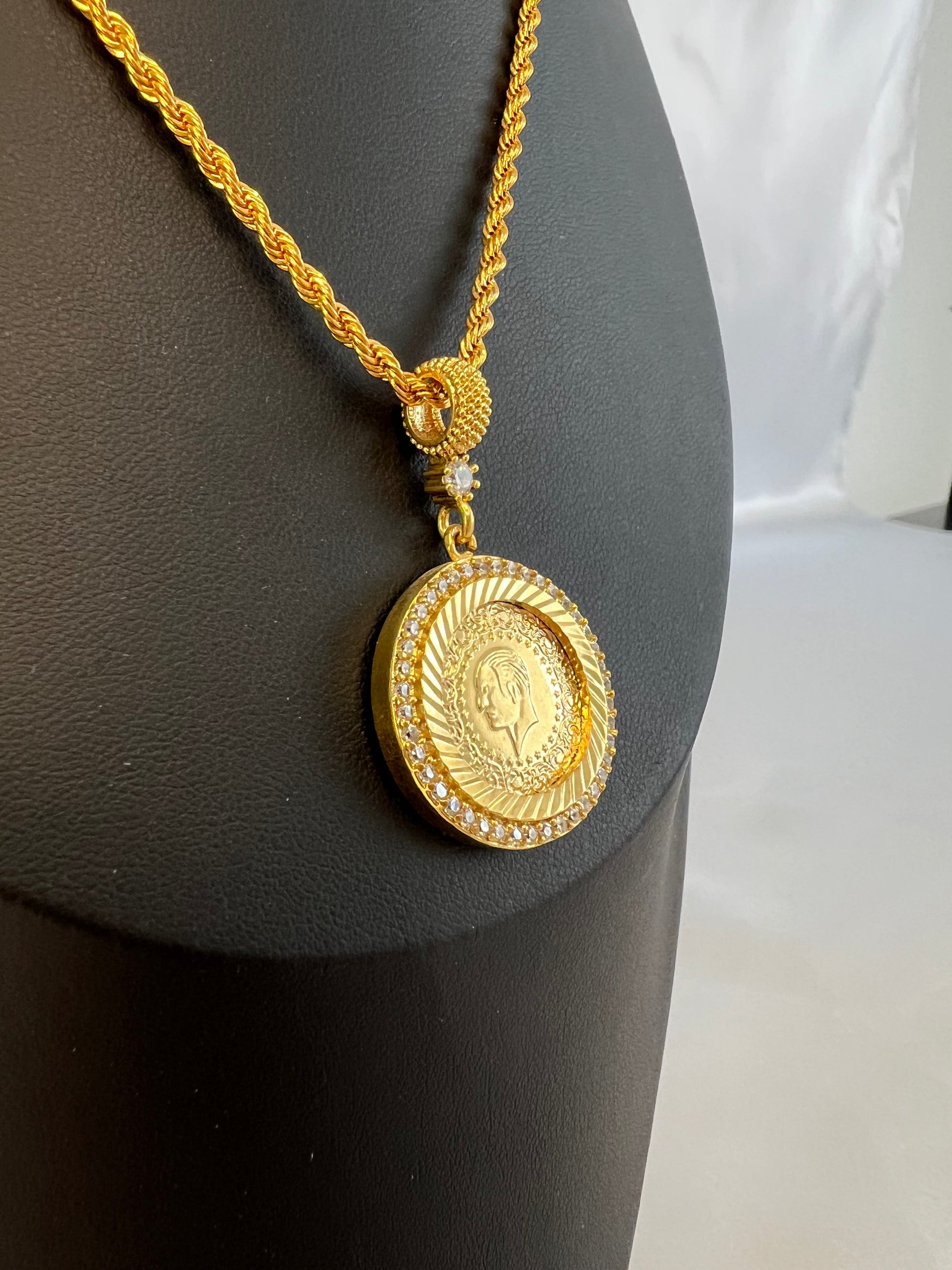 Hergestellt aus hochwertigen Materialien und kunstvoll vergoldet, strahlt diese Halskette einen unwiderstehlichen Glanz aus, der jeden Blick auf sich zieht. Ihr elegantes Design macht sie zu einem vielseitigen Accessoire, das perfekt zu jedem Outfit passt - sei es für den täglichen Gebrauch oder für besondere Anlässe.